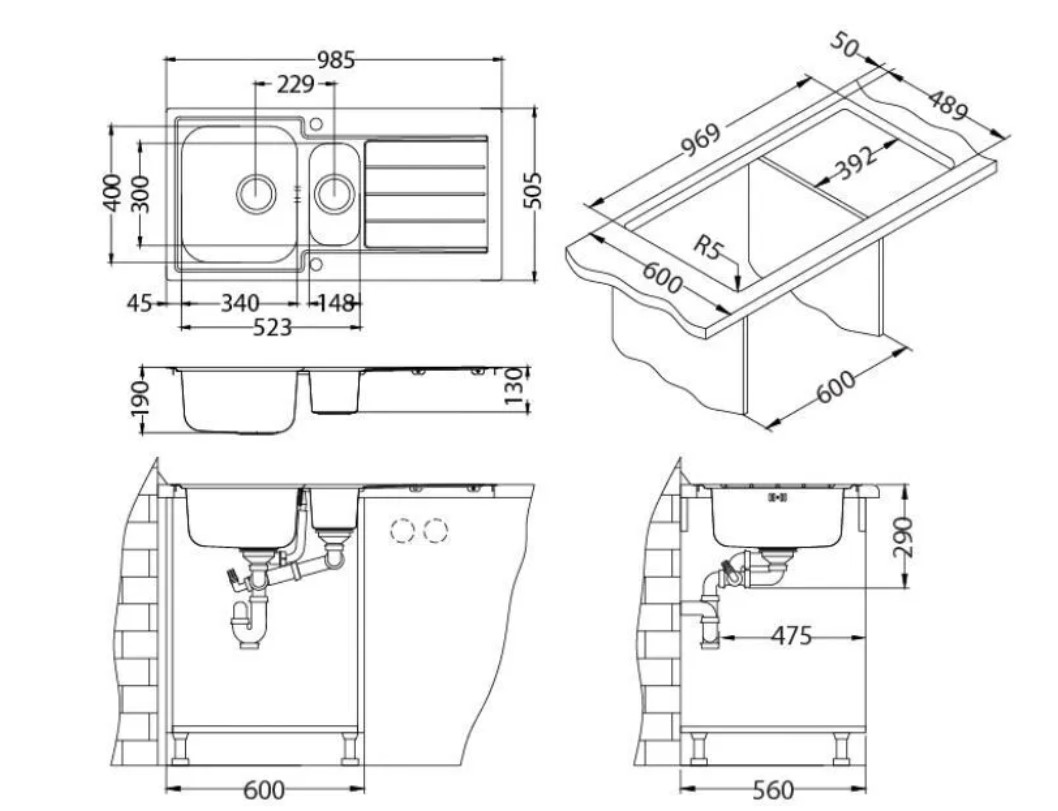 Ширина мойки (см) 50,5