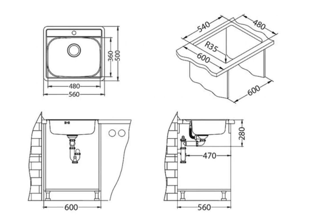 Мойка ALVEUS MORE 10 LEI-90 560X500 1X в компл. с сифоном 1102384