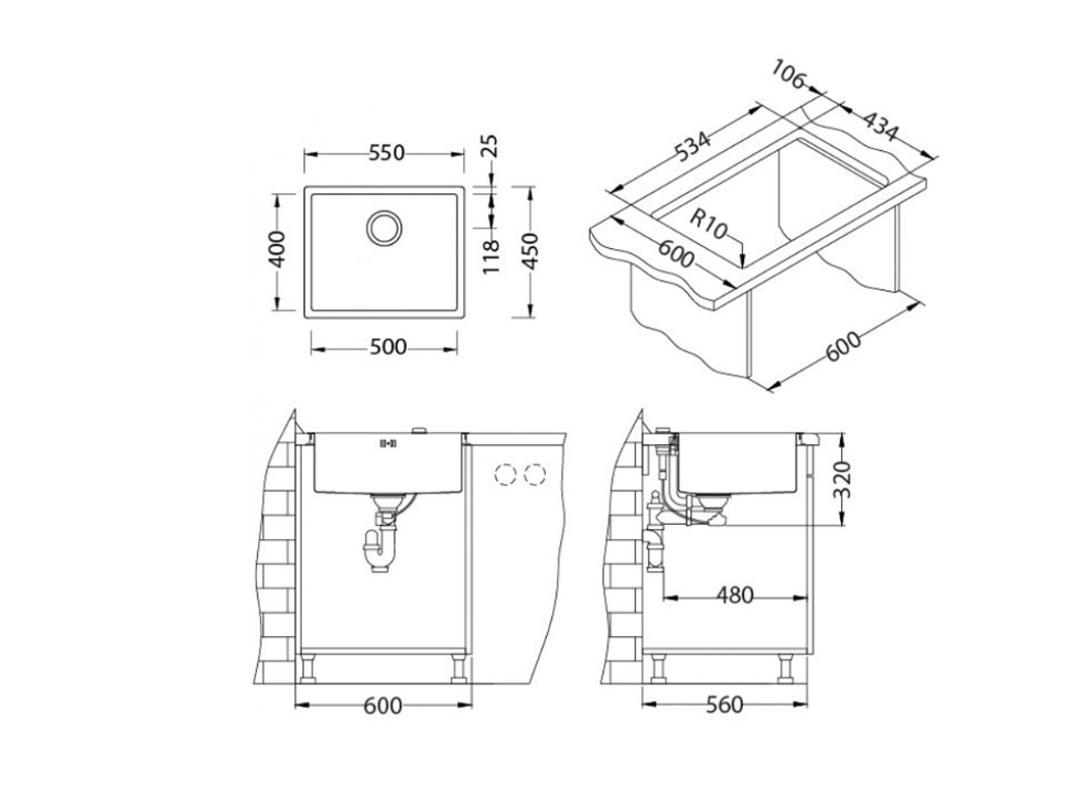 Типы установки: Полностью врезные мойки (F) / Плоскостно-врезные мойки (S) / Чаши для монтажа под столешницу (U)