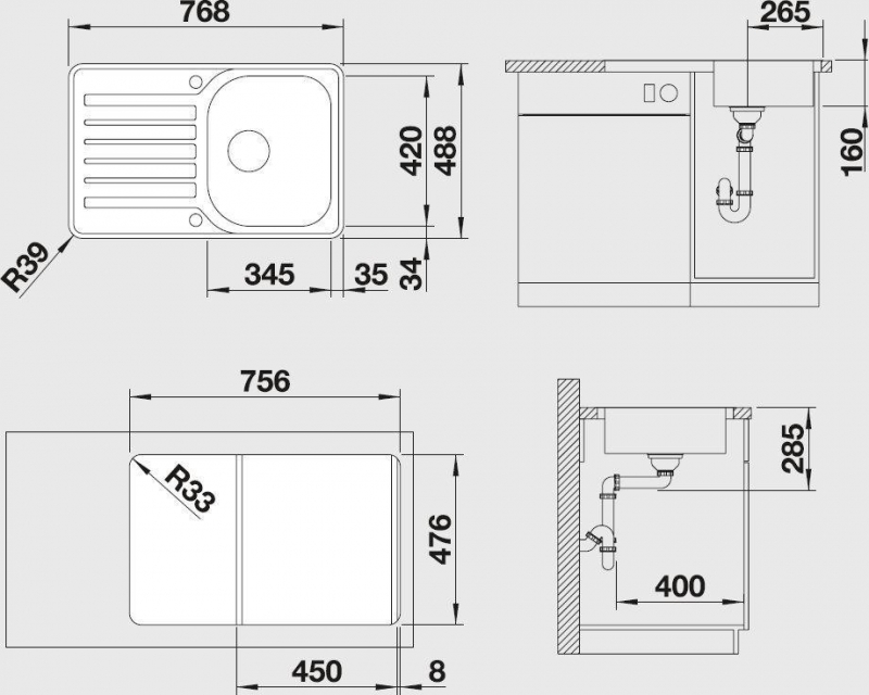 Глубина мойки: 488 мм