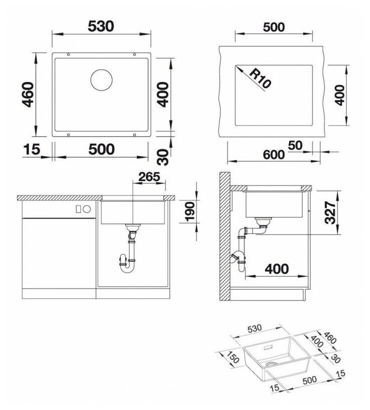 Размер монтажного отверстия под мойку (ШхГ)