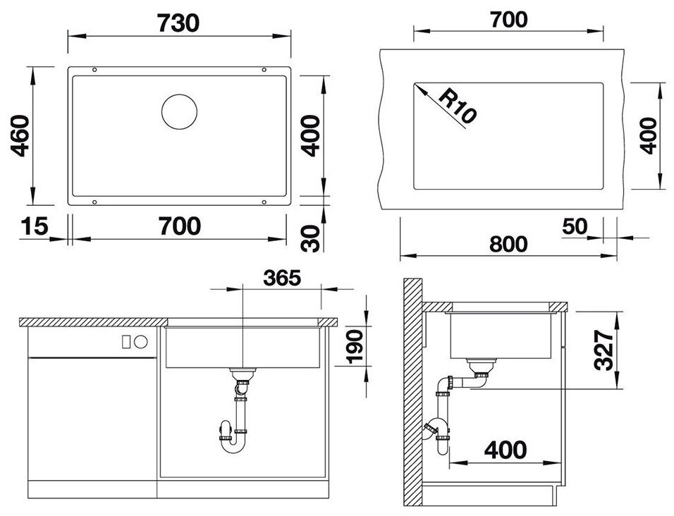 Размеры врезного отверстия (под столешницу) | 700x400 мм |