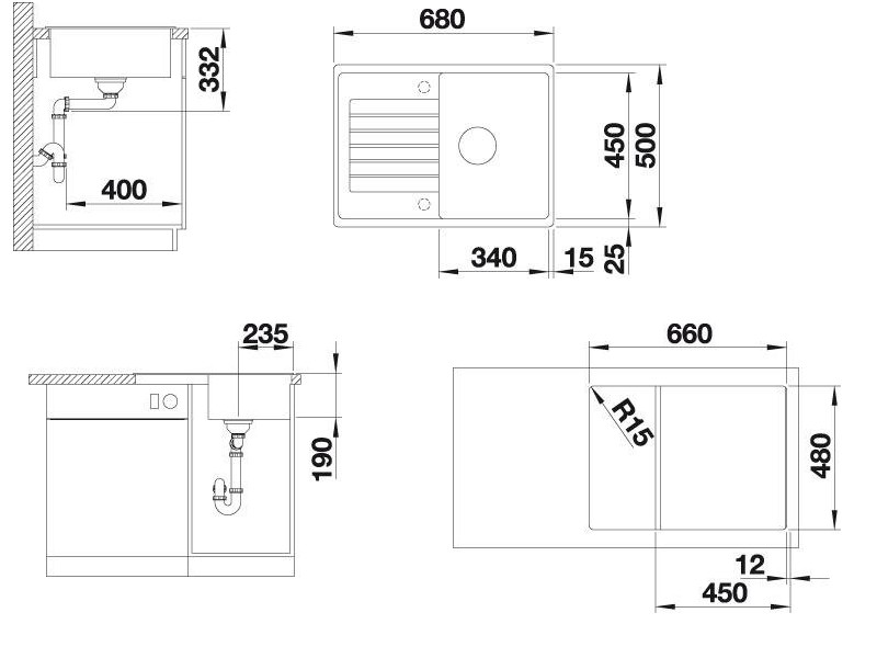 660x480 мм / угловой радиус врезки 15 мм /