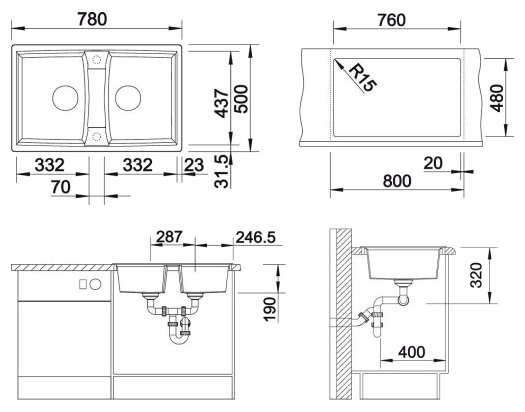 Размер монтажного отверстия под мойку (ШхГ)