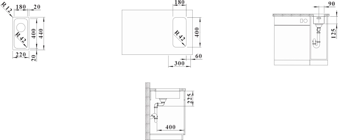Размеры врезного отверстия (под столешницу) | 180x400 мм |