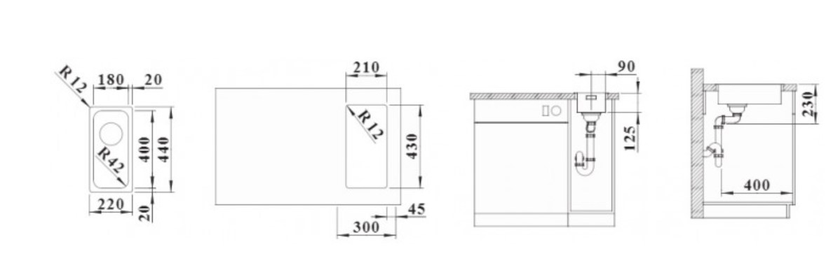 Ширина мойки: 44 см