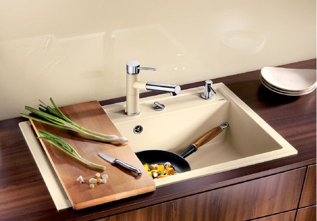 Просторная площадка под смеситель позволяет расположить дополнительные аксессуары и кухонные принадлежности