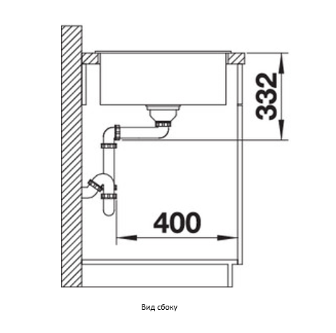 *Учитывать ширину пристенного канта в случае установки мойки возле стены или пенала.