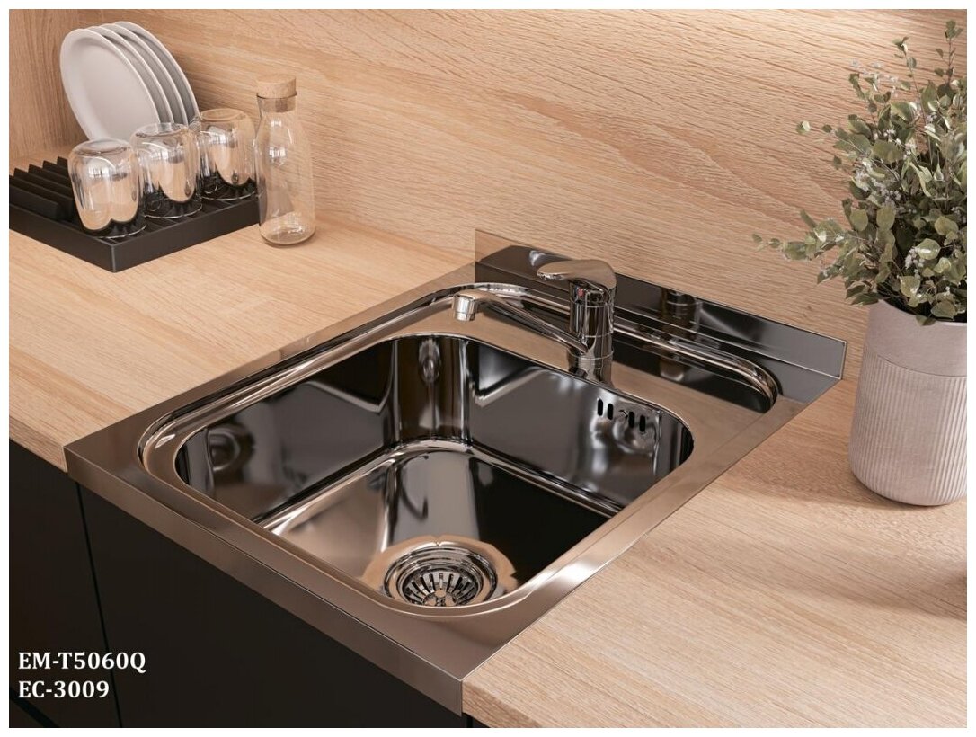 Мойка изготовлена из нержавеющей стали, материал долговечен.