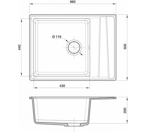 Технические характеристики GranFest LEVEL мрамор чаша+кр 660х500 черная