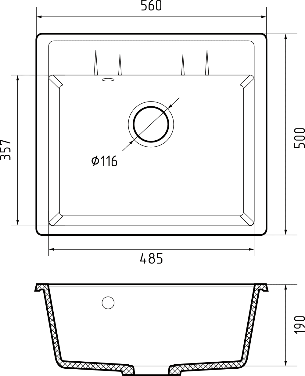 Модель кухонной мойки Q-561 отличается своей функциональность и продуманностью линий. Уже подготовлено отверстие для смесителя и Вы сможете с легкостью установить её без лишних затрат времени. Площадка под смеситель имеет скошенные внутрь лучики, вода с лёгкостью будет стекать в чашу. Радиус скругления внутренних углов чаши обеспечит лёгкий уход. Безопасный и экологически чистый продукт. Повышенный комфорт. Стильный дизайн. Высокое качество. Высокие потребительские характеристики: ударопрочность, гидрофобность, шумопоглащение, стабильность формы и геометрии, идеальное прилегание к столешнице.