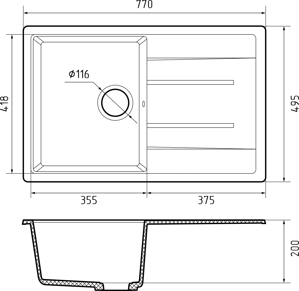 Мойка для кухни QUADRO 780L с вогнутыми лучами на крыле наделяет интерьер визуальной гармонией и комфортом в использовании. Преимущества модели: - Универсальность расположения чаши. Это значит, что основная чаша может располагаться справа либо слева в зависимости от особенностей планировки вашей кухни и потребности в рабочей поверхности. - Большая функциональная чаша позволяет разместить внутри крупногабаритную посуду и промывать ее без лишних усилий. - Глубина 200мм считается оптимальной для кухонных моек: не приходится напрягать спину и брызги при сильном напоре воды не разлетаются во все стороны. - На вертикальных плоскостях мойки присутствует глянец. Такое решение задаёт повышенный угол водоотталкивания с вертикальных плоскостей мойки. - Защитное покрытие гелькоутом сохраняет антивандальные свойства изделия. - Базовый природный оттенок.