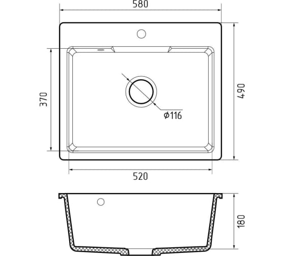 В качестве материала изготовления используется кварцевый композит, обеспечивающий повышенную прочность и долговечность мойки