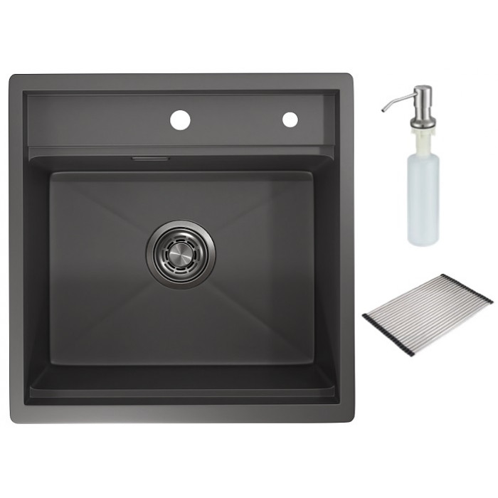 Сифон, комплект креплений, дозатор для жидкого мыла (нерж) арт.1403 и ролл-мат