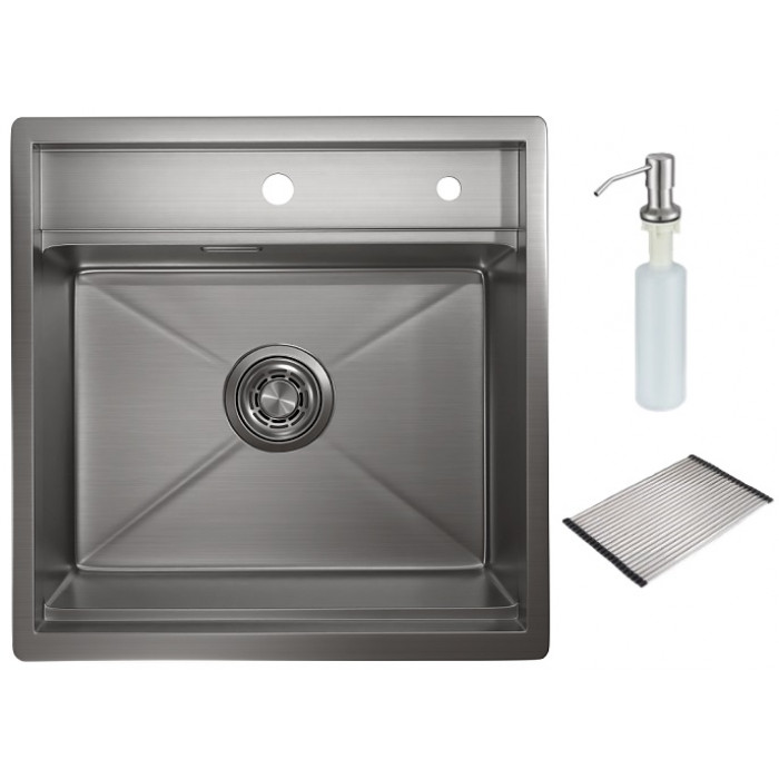 Сифон, комплект креплений, дозатор для жидкого мыла (нерж) арт.1403 и ролл-мат