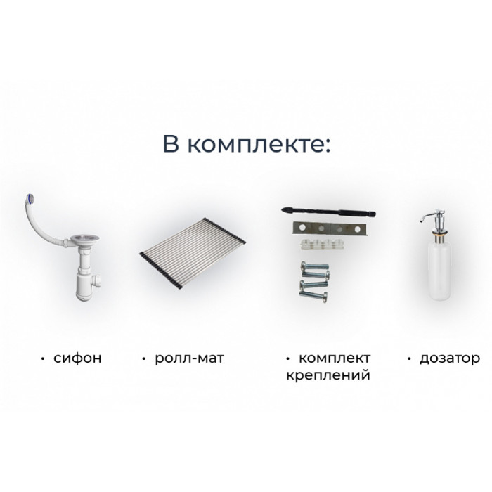 Сифон, комплект креплений, дозатор для жидкого мыла (нерж) арт.1403 и ролл-мат