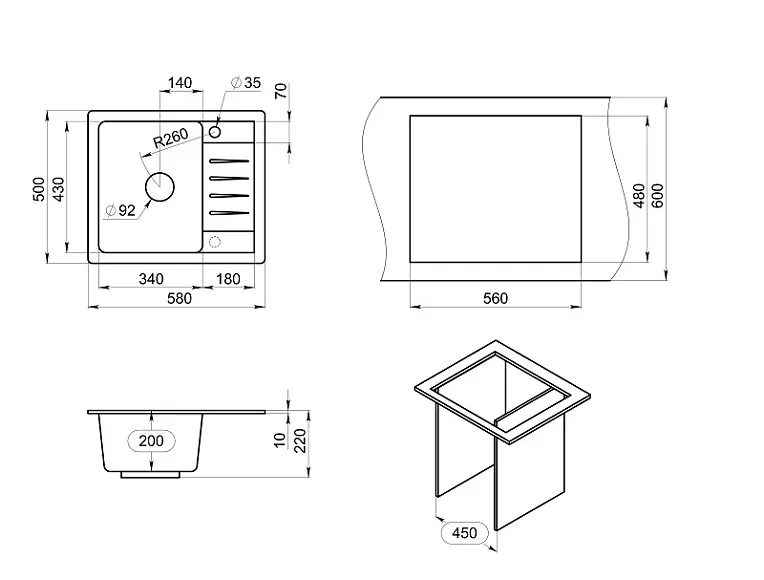Ширина мойки
