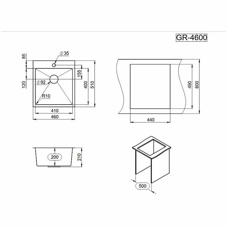 диаметр слива - 92 мм; комплектация: мойка, сифон, комплект креплений
