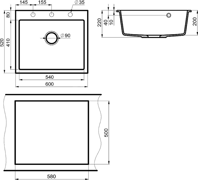 Монтаж Врезной ( встраиваемый сверху )