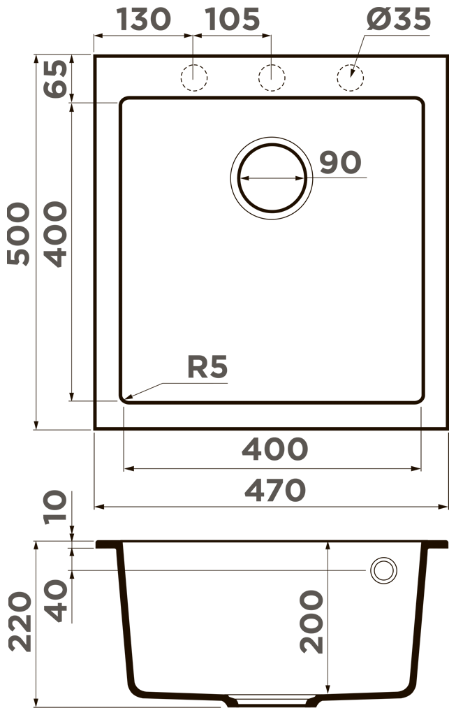 корзинчатый вентиль, отверстие под смеситель, сливная арматура