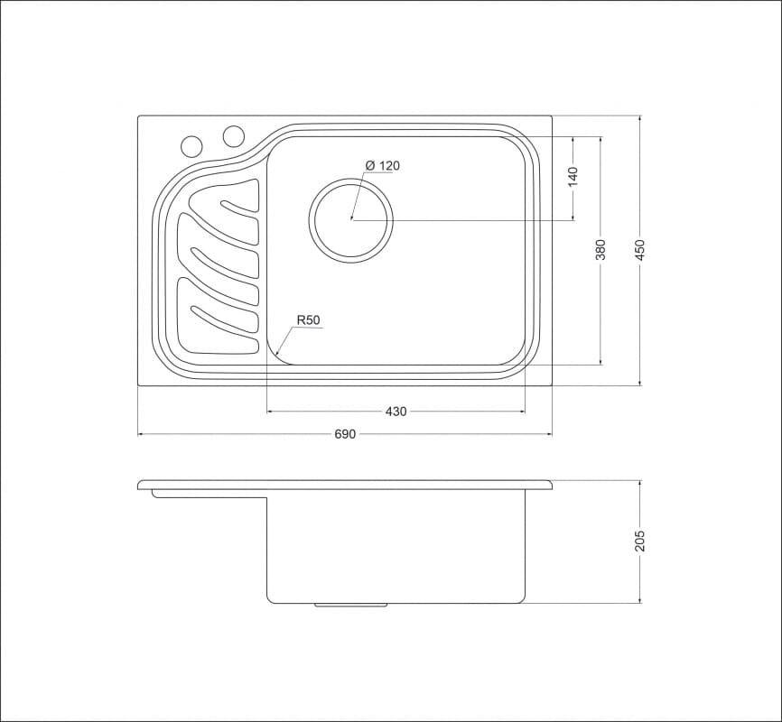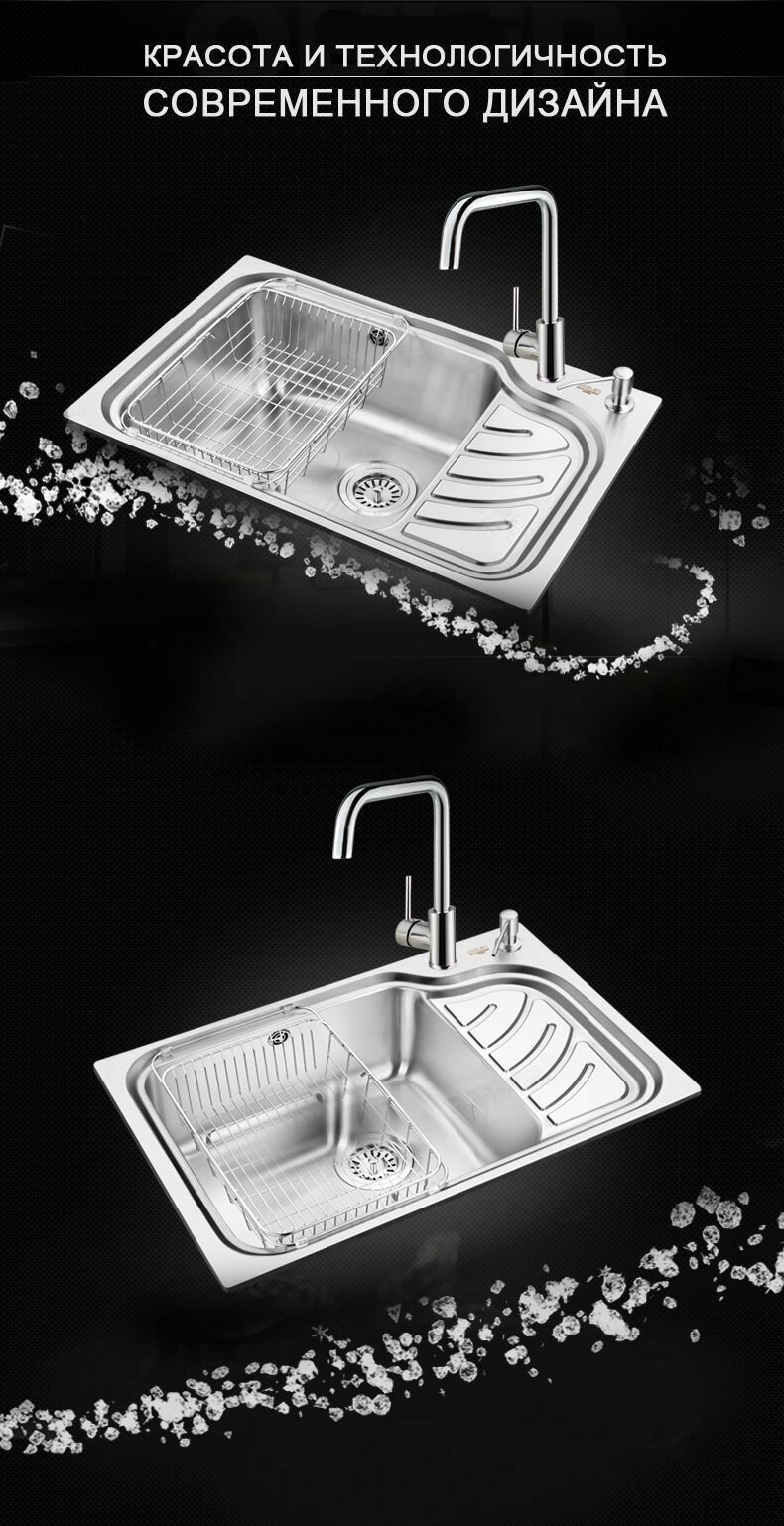 комплектация: мойка, сифон, слив-перелив, корзинчатый вентиль, инструкция; материал: нержавеющая сталь AISI 304