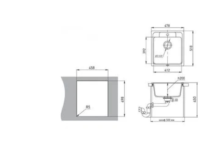Комплектация: сифон, сливная арматура, корзинчатый вентиль;