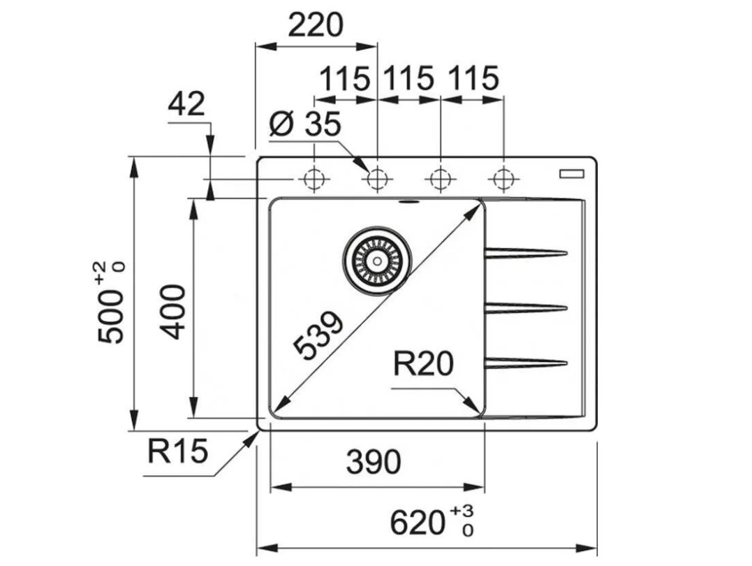 Радиус скругления чаши, мм: 20