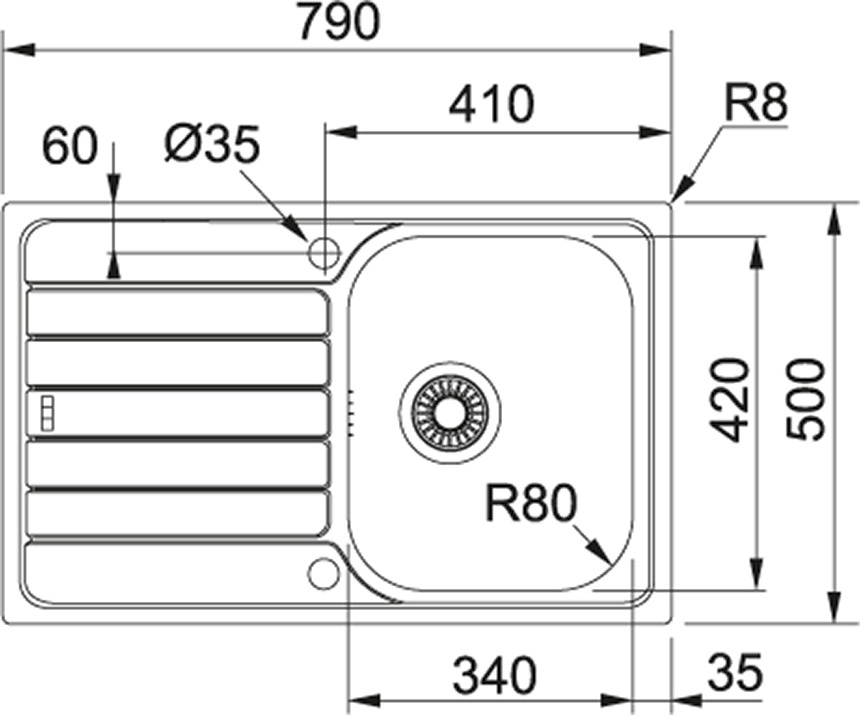 Длина мойки: 79 см