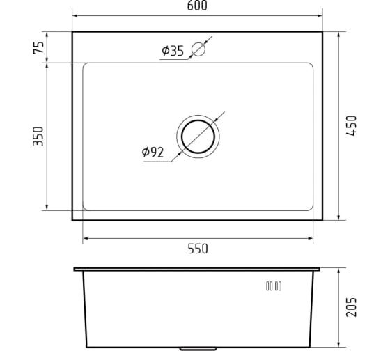 Мойка комплектуется оригинальной сливной арматурой с ситечком и пробкой. Сливная арматура без дополнительных отводов для стиральной или посудомоечной машин. Сливная арматура отдельно от мойки не продается.