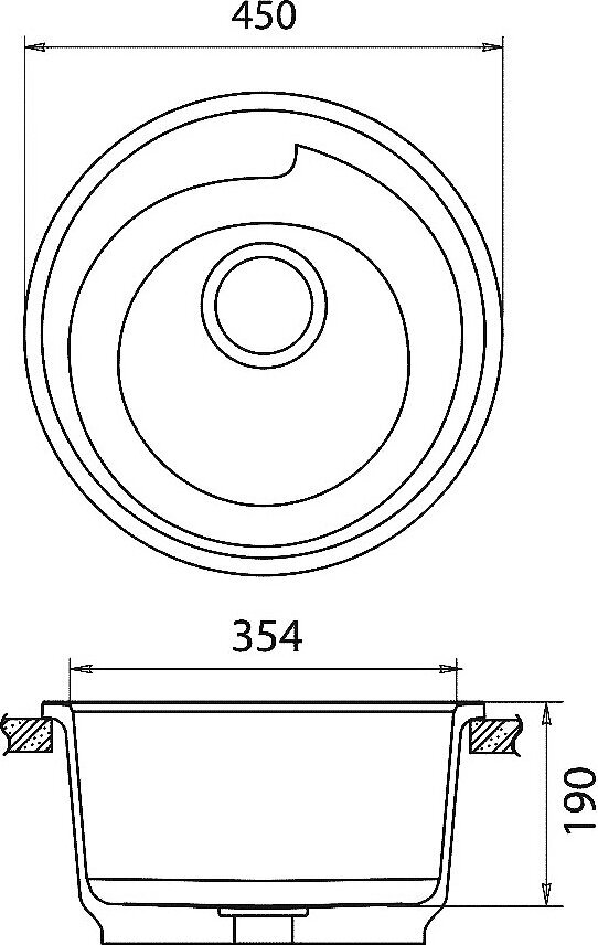 В связи с особенностями литьевого производства размеры изделий могут варьироваться, поэтому вырез в столешнице рекомендуется делать непосредственно с изделия.