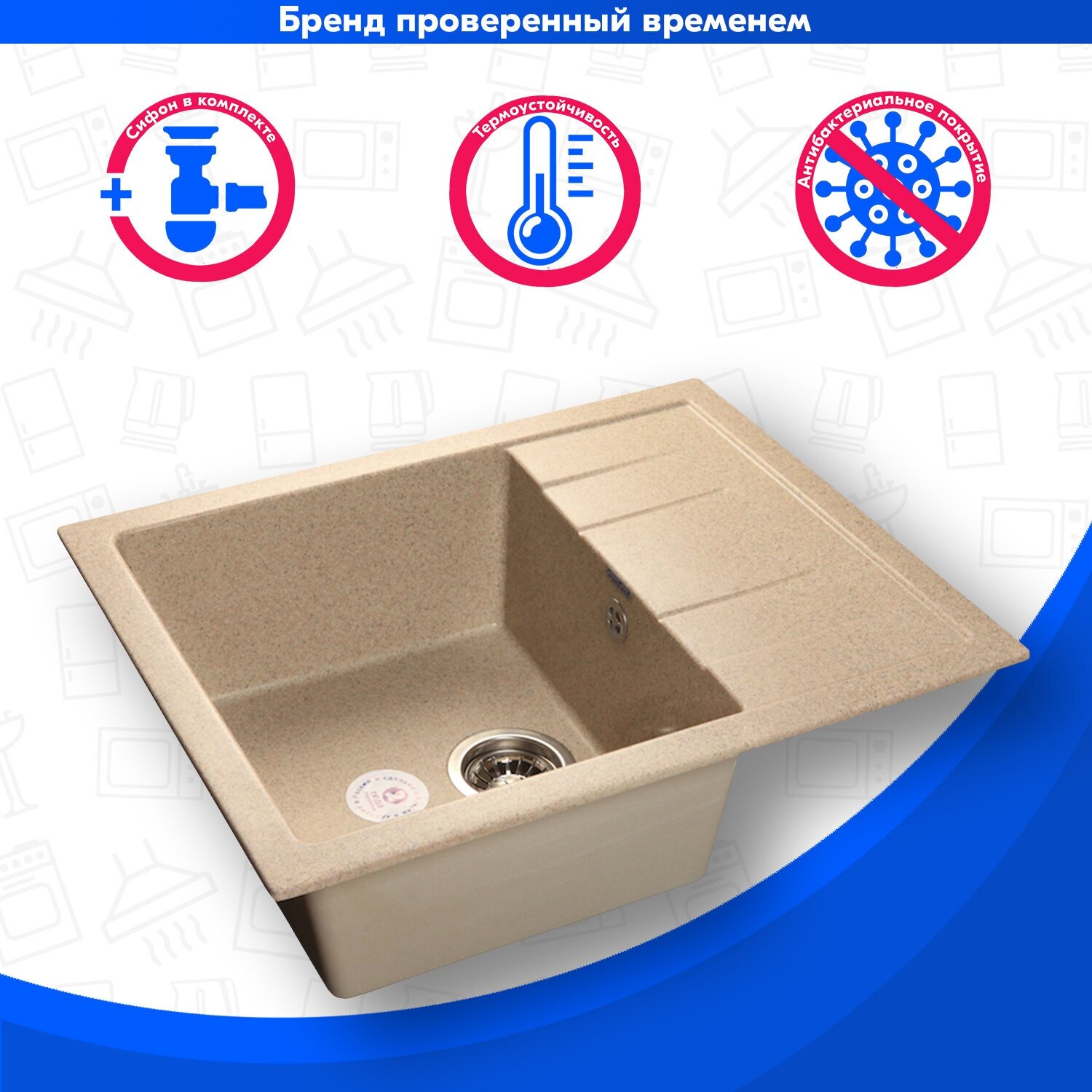 Мойка кухонная GranFest Quadro GR-Q650L. Изготовлена из высококачественного искусственного мрамора, ударопрочного и устойчивого к царапинам материала, отсутствие пористости защищает от красящих веществ и воздействия ультрафиолета. Благодаря вместительной чаше, мойка обладает большей функциональностью и удобством в использовании.