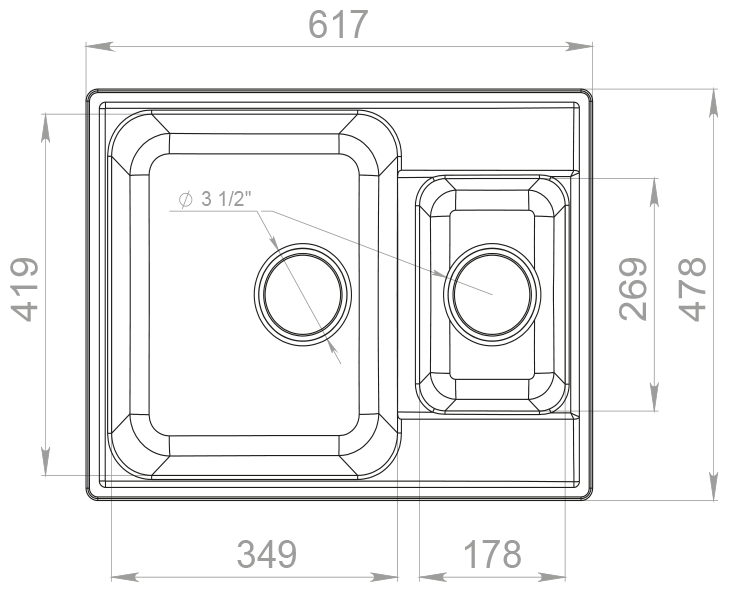 Размер чаши: 350 x 420 x 180 мм,178 x 269 x 120 мм