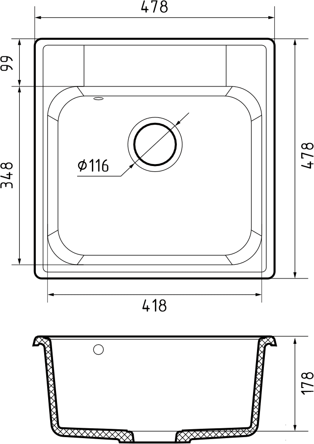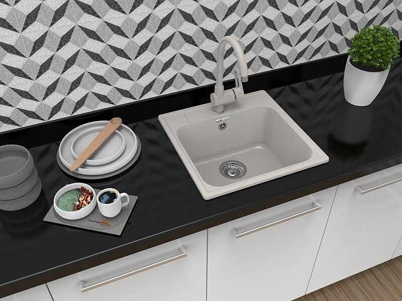 Несмотря на свою компактность, мойка для кухни GranFest Quarz GF-Z48 имеет достаточно глубокую квадратную чашу. В ней удобно мыть формы для запекания, кастрюли и даже большие сковороды. Модель оснащена площадкой под смеситель и аксессуары. В качестве материала изготовления используется кварцевый композит, обеспечивающий повышенную прочность и долговечность мойки.
