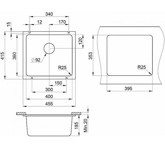 Чаша из искусственного гранита имеет оптимальную глубину, гигиенична и безопасна в использовании.