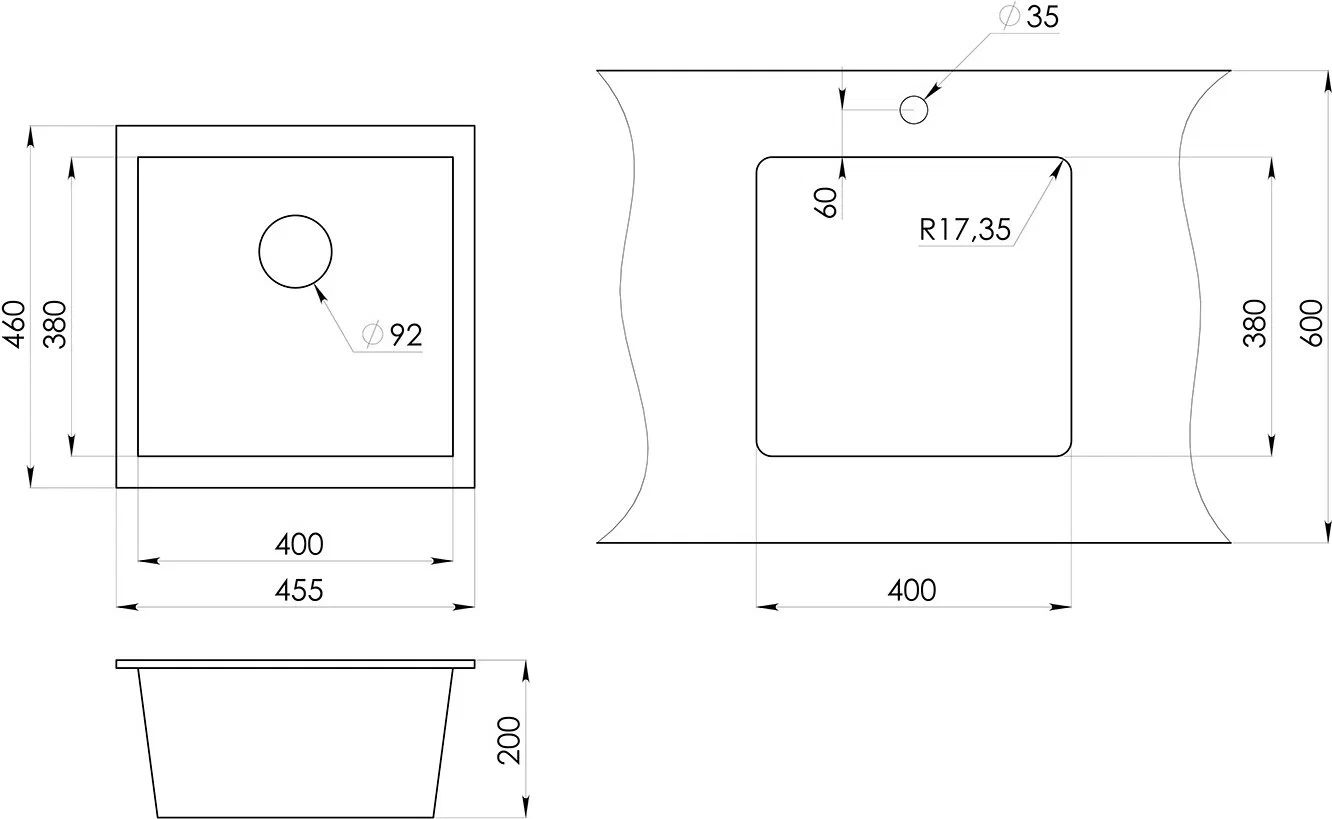 универсальный монтаж (на столешницу, под столешницу, вровень со столешницей); в комплекте сифон и комплект креплений