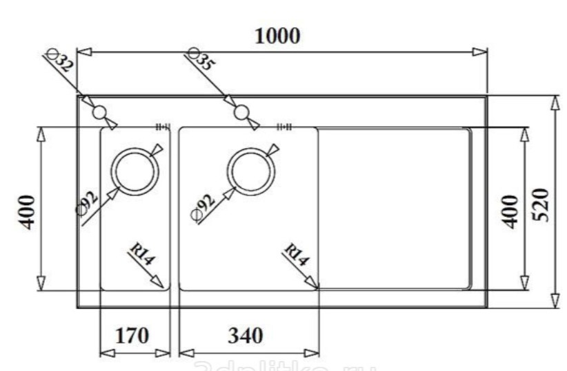 Радиус закругления чаши: 14 мм