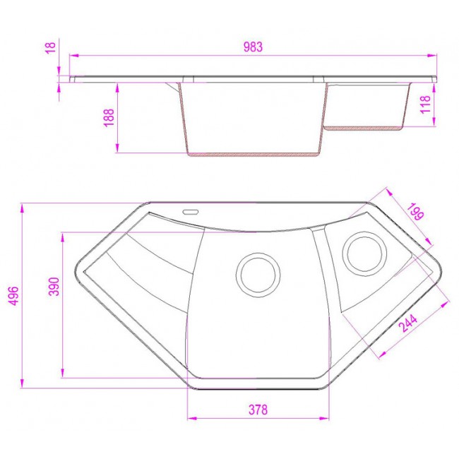 Прочие Марка / Бренд АлмазМрамор Россия Высота. мм 200 Глубина. мм 980 Матеpиал изделия Каменная Минимальный размер тумбы 1000 мм Монтаж изделия Встраиваемый сверху Размер чаши 395 х 360 х 200 мм, 190 х 160 х 130мм Расположение крыла Слева Тип мойки Врезная Формa Многоугольная Ширина. мм 500