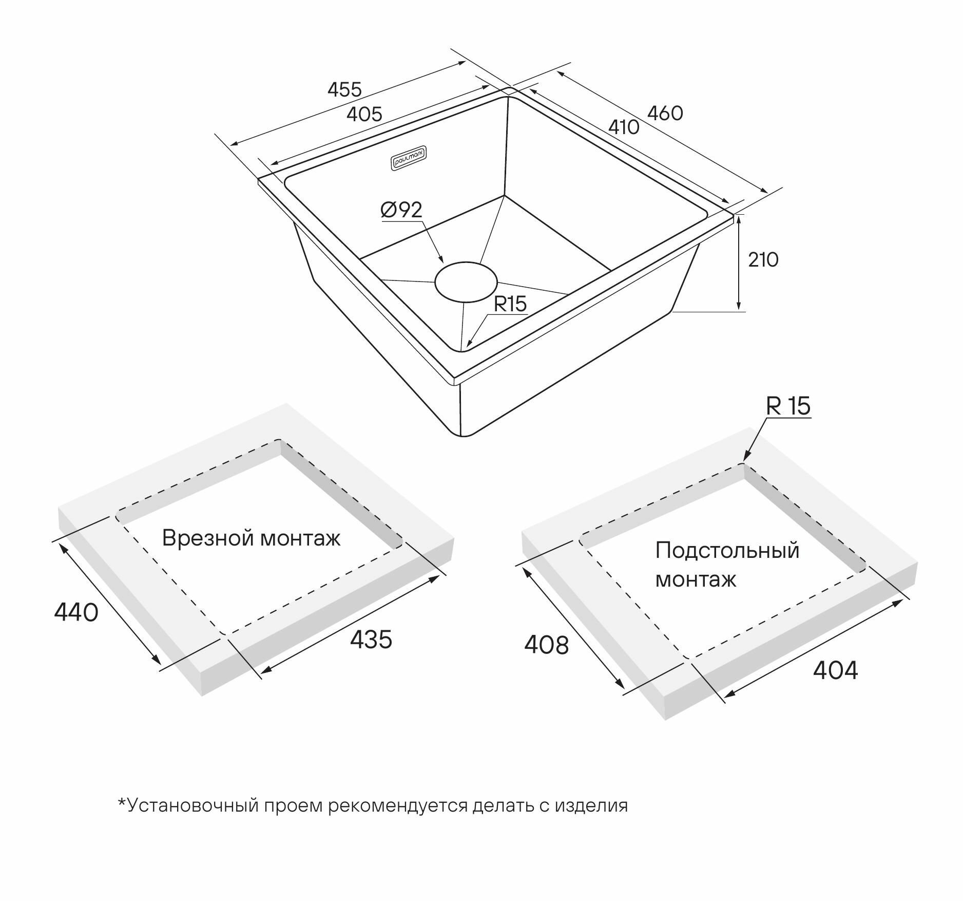 Мойка, крепёж для монтажа, отводная арматура, сифон в сборе