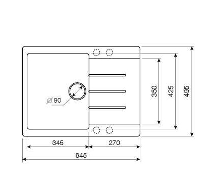 Готовых отверстий для смесителя: Нет