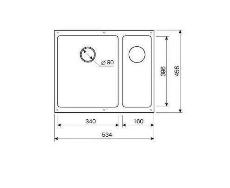 Прямоугольная модель с большой чашей глубиной 19 см и малой чашей глубиной 13 см.