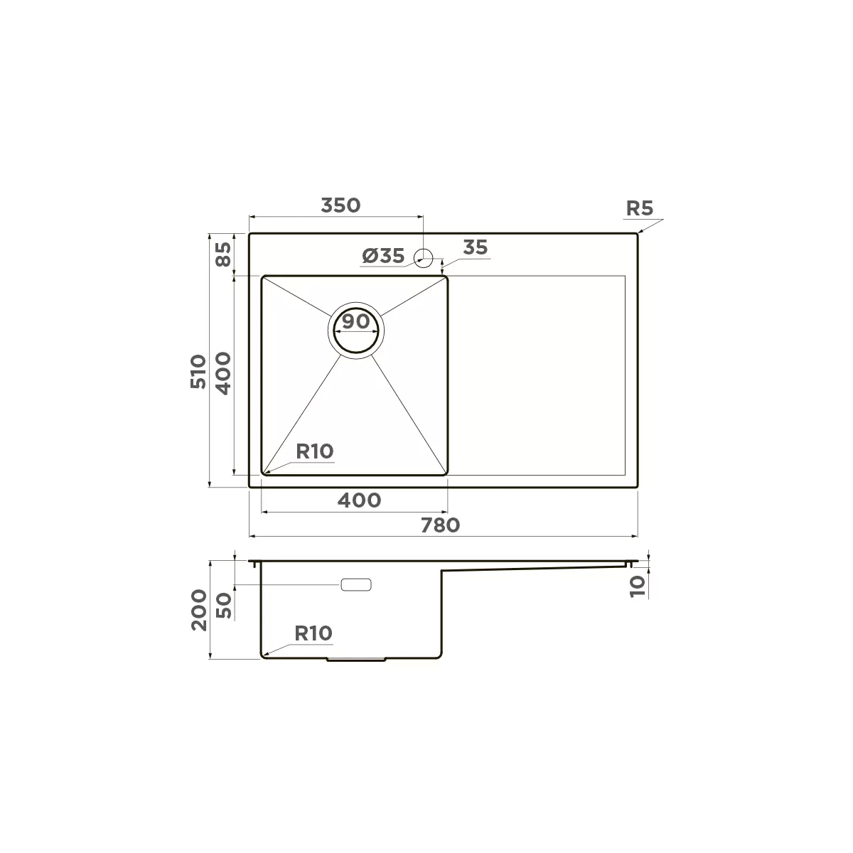 Монтаж встраиваемый сверху / в один уровень со столешницей