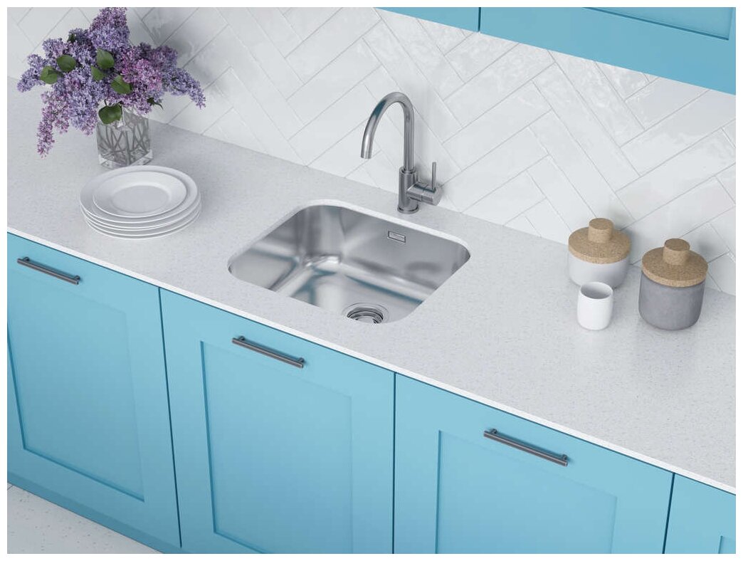 Комплектация: крепления для подстольного монтажа, донный клапан, сифон. Автоматический донный клапан приобретается отдельно. Шумоподавляющее покрытие состоит из двух компонентов: резиновой накладки на дне и специального противошумного состава.
