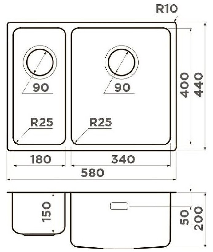Двухчашевая японская мойка для кухни OMOIKIRI Tadzava 58-2-U/IF-IN имеет матовую полировку, устойчивую к появлению царапин. Помимо основной чаши, размером 340х400 мм и глубиной 200 мм, модель имеет дополнительную чашу размером 180х400 мм и глубиной 150 мм. Что дает наличие второй небольшой чаши? Как минимум - еще одно полноценное рабочее место, в котором можно мыть овощи/фрукты и мелкие столовые приборы.