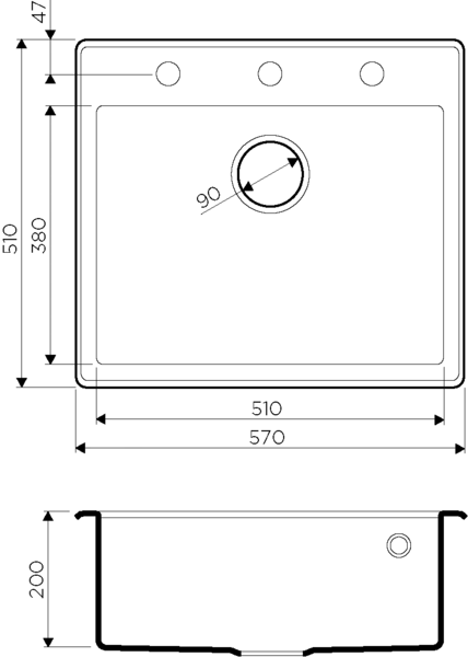 Мойка TEDORI 57 идеально интегрируется в тумбу кухонного гарнитура. Предложенная модель украсит кухню с фасадом без ручек или с ручками.