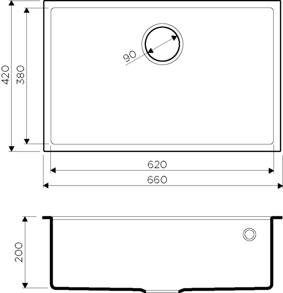 Размер выреза под мойку, мм: 620*380