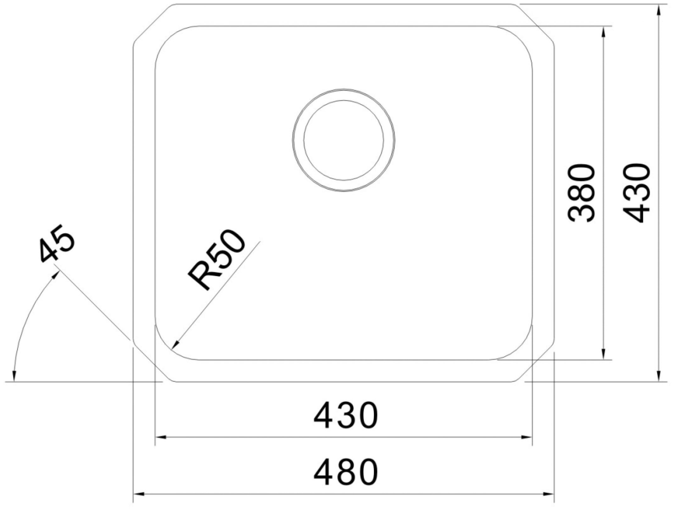 Вырез под мойку, мм