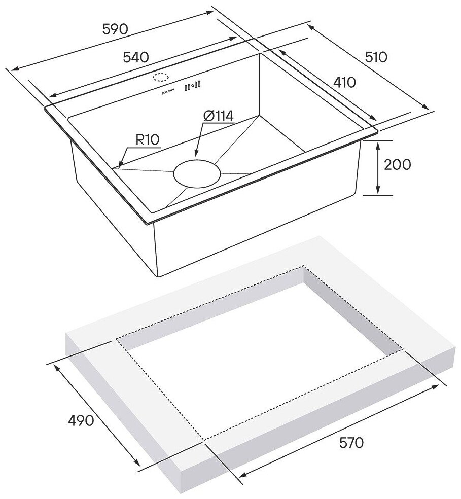 Монтаж в один уровень со столешницей / встраиваемый сверху / встраиваемый снизу
