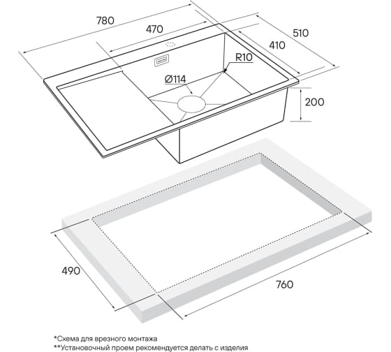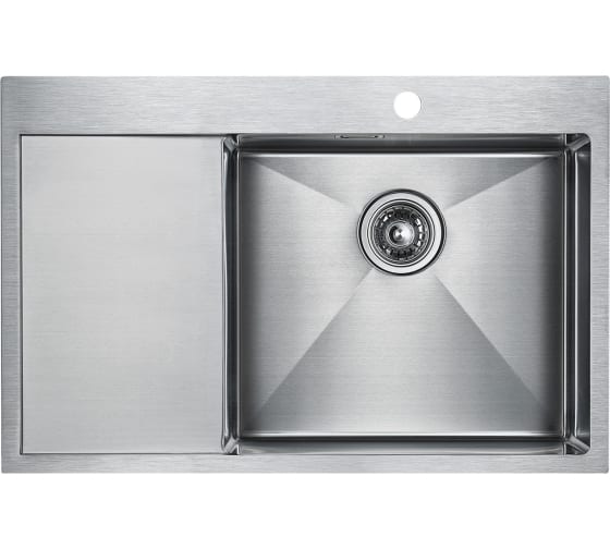 Мойка кухонная из брашированной нержавеющей стали ELDE R PM807851-BSR. Изготовлена из высококачественной и экологически чистой нержавеющей стали AISI 304, легированной никелем, марганцем, медью и хромом, что обеспечивает ей повышенную прочность и устойчивость в коррозионных средах. Габариты мойки составляют 780x510мм, функциональное плоское крыло мойки может служить дополнительной рабочей поверхностью. Возможен монтаж вровень со столешницей или врезной монтаж мойки.
