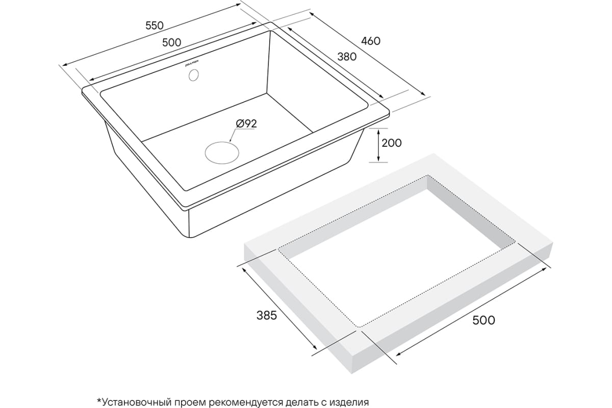 Технические характеристики Paulmark GERA белый, 555х460, подстольный монтаж