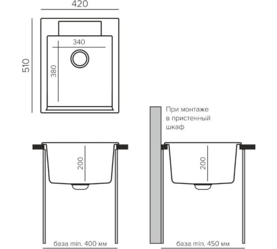 Кухонная Мойка POLYGRAN Argo-420 устанавливается на тумбы шириной от 45 см, отлично подходит для узких столешниц. При этом в мойке можно вымыть даже противень.